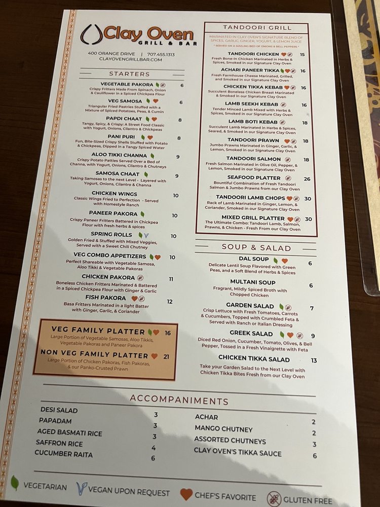 Clay Oven Grill & Bar offers a unique blend of Indian cuisine in a sports bar setting. With a diverse menu featuring biryanis, bread specialties, and a variety of beverages, there is something for everyone to enjoy. Customers rave about the delicious food, efficient service, and inviting atmosphere. The restaurant is known for its flavorful dishes like the butter chicken and garlic naan, with options for different spice levels to suit your preference. The portion sizes are generous, and the staff goes above and beyond to ensure a memorable dining experience. Whether you're looking for a family outing or a date night, Clay Oven Grill & Bar is a hidden gem in Solano County that will leave you full and satisfied. Visit them at 400 Orange Dr, Vacaville, CA for a taste of authentic and impressive Indian cuisine.
